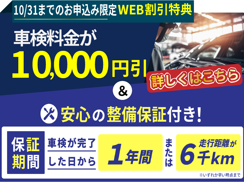 • 1早期割引(車検満了日から6カ月前以上の予約で適用等)