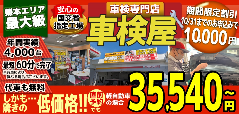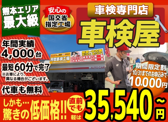 熊本市・合志市・益城町・御船町・嘉島町・菊陽町・大津町エリアトップクラスの車検実績!